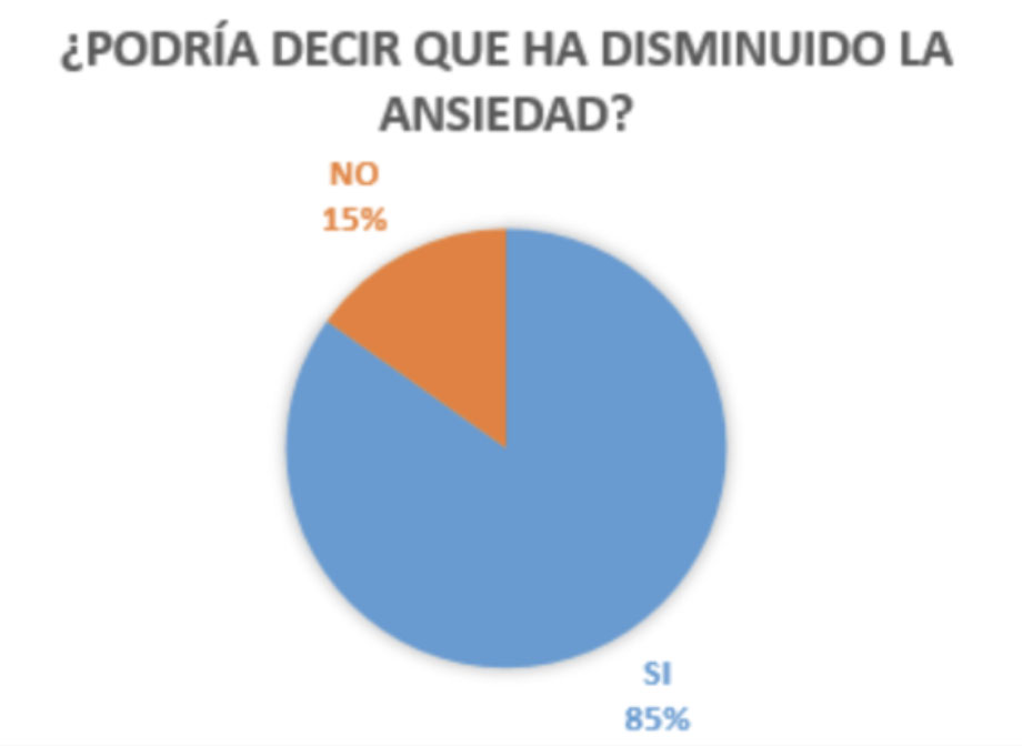 85% experimentó una reducción significativa en su nivel de ansiedad