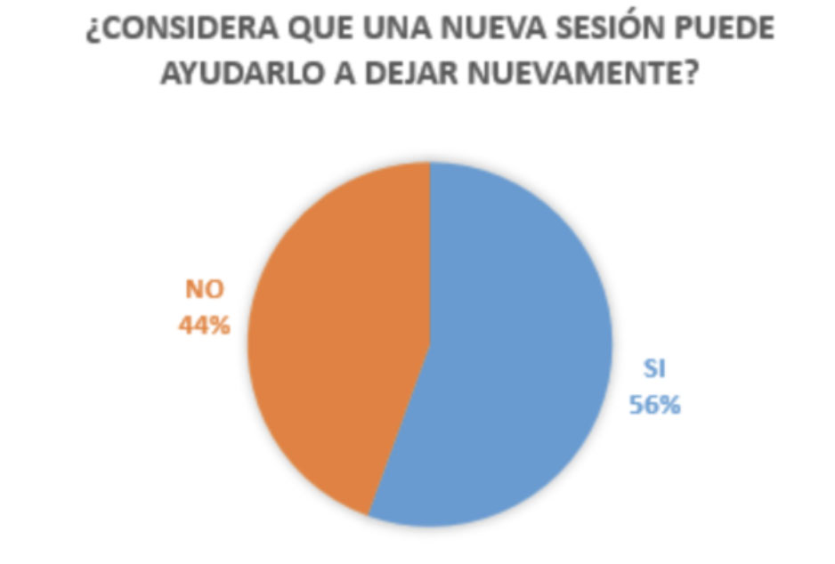 El 56% de las personas que recayeron consideró que una nueva sesión les ayudaría; la recaída no se interpreta como un fracaso, sino como parte del proceso.