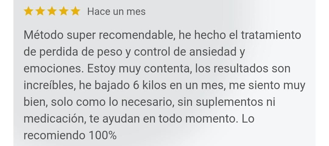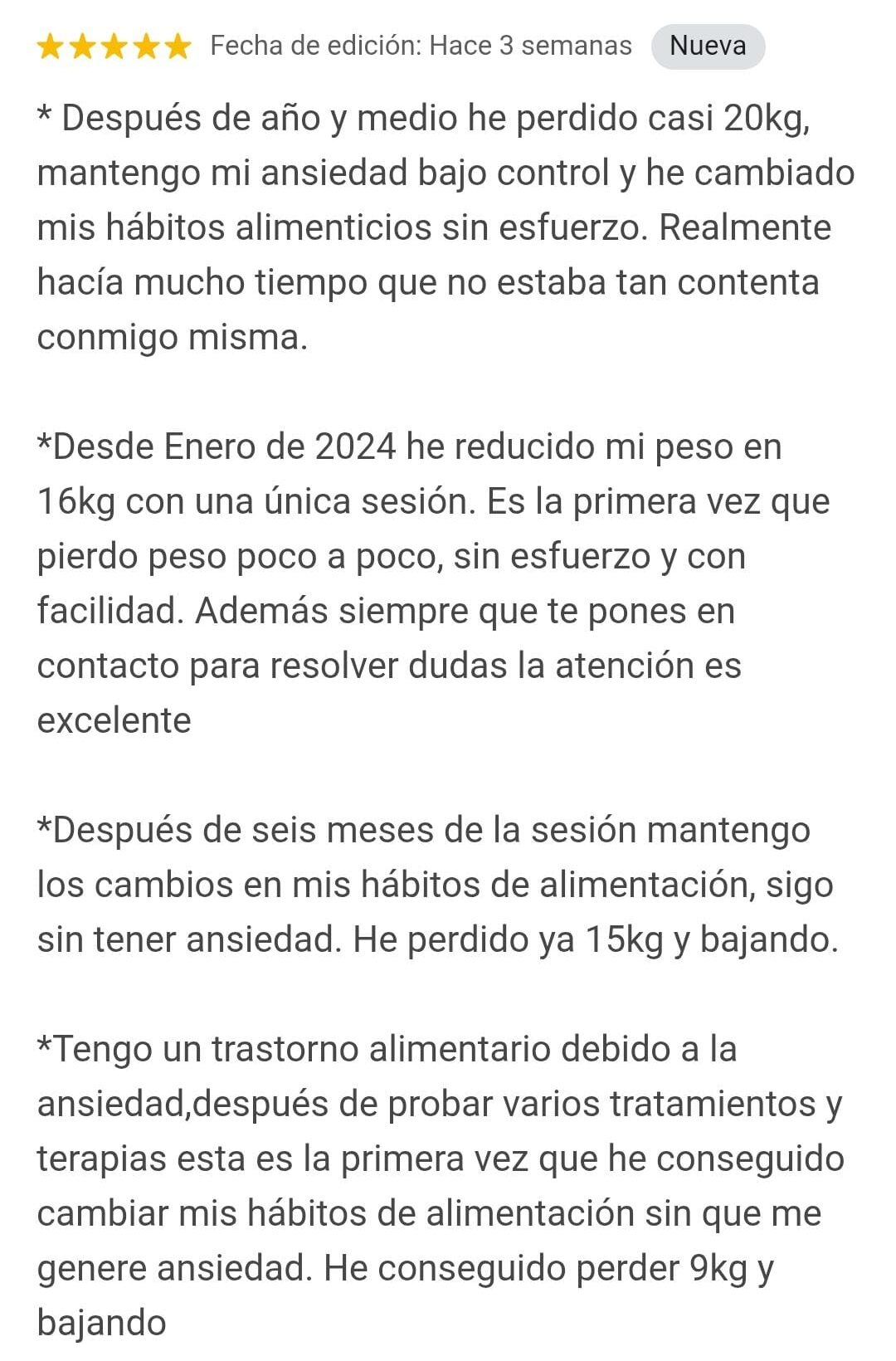 - Segunda sesión: Refuerzo de nuevos hábitos y reducción natural del apetito.